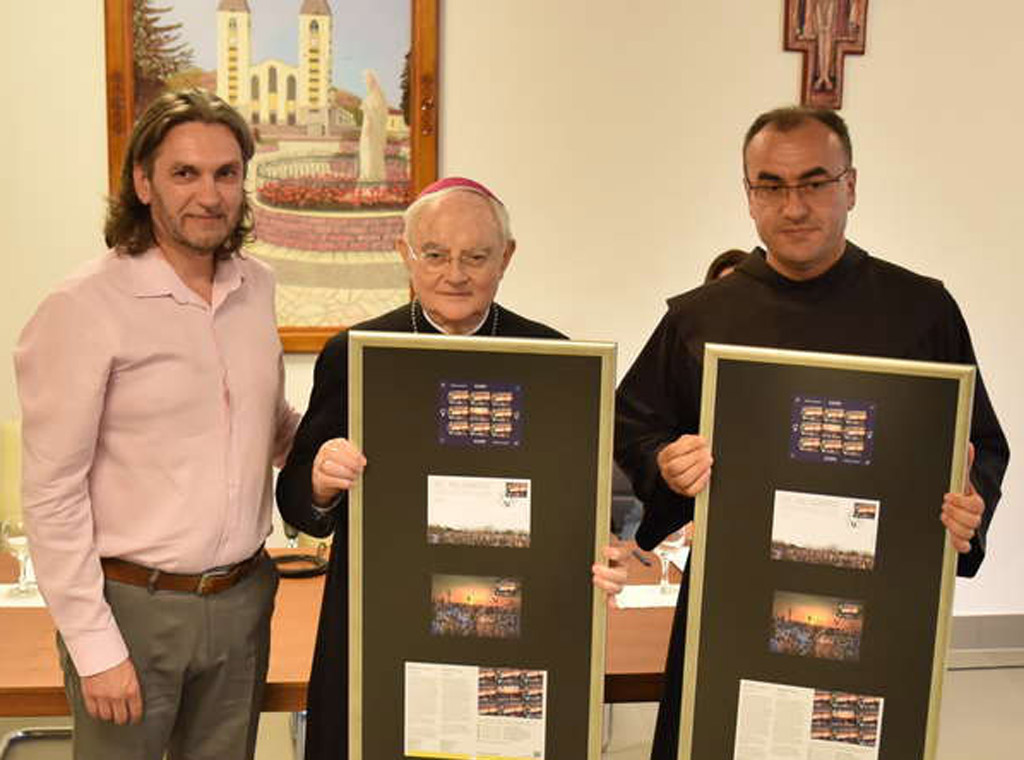 Na kraju konferencije za medije predstavljena je prigodna marka Hrvatske pošte Mostar izdana u povodu Mladifesta, a direktor prodaje HP-a Mostar Josip Bulić uručio ju je nadbiskupu Hoseru i fra Marinku.