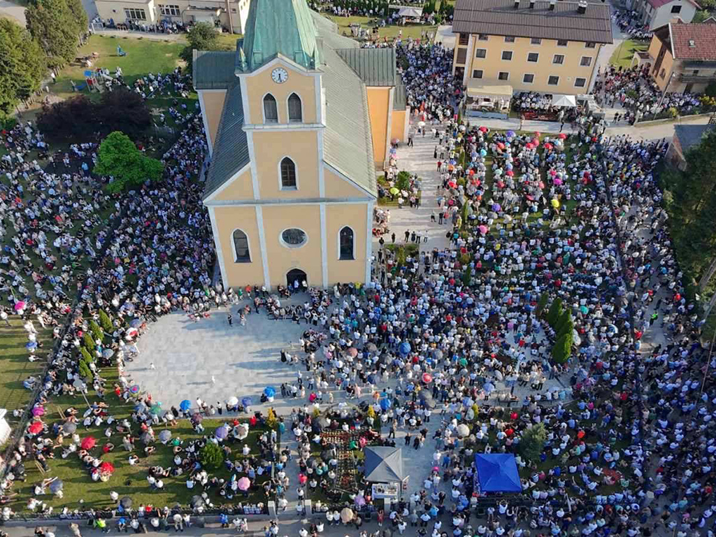 Euharistiju na vanjskom oltaru u župnom dvorištu ispred crkve predslavio je vrhbosanski nadbiskup metropolita mons. Tomo Vukšić. Koncelebrirali su župnik fra Zoran Jaković i dekan Kreševskog dekanata fra Josip Tomas te desetak svećenika koji pastoralno djeluju u tom kraju.