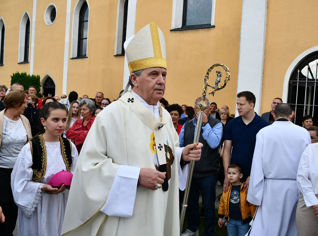 Svetu misu na vanjskom oltaru u župnom dvorištu ispred crkve, predvodio je nadbiskup metropolita vrhbosanski mons. Tomo Vukšić, uz koncelebraciju sedam svećenika, među kojima i domaćeg župnika fra Zorana Jakovića.