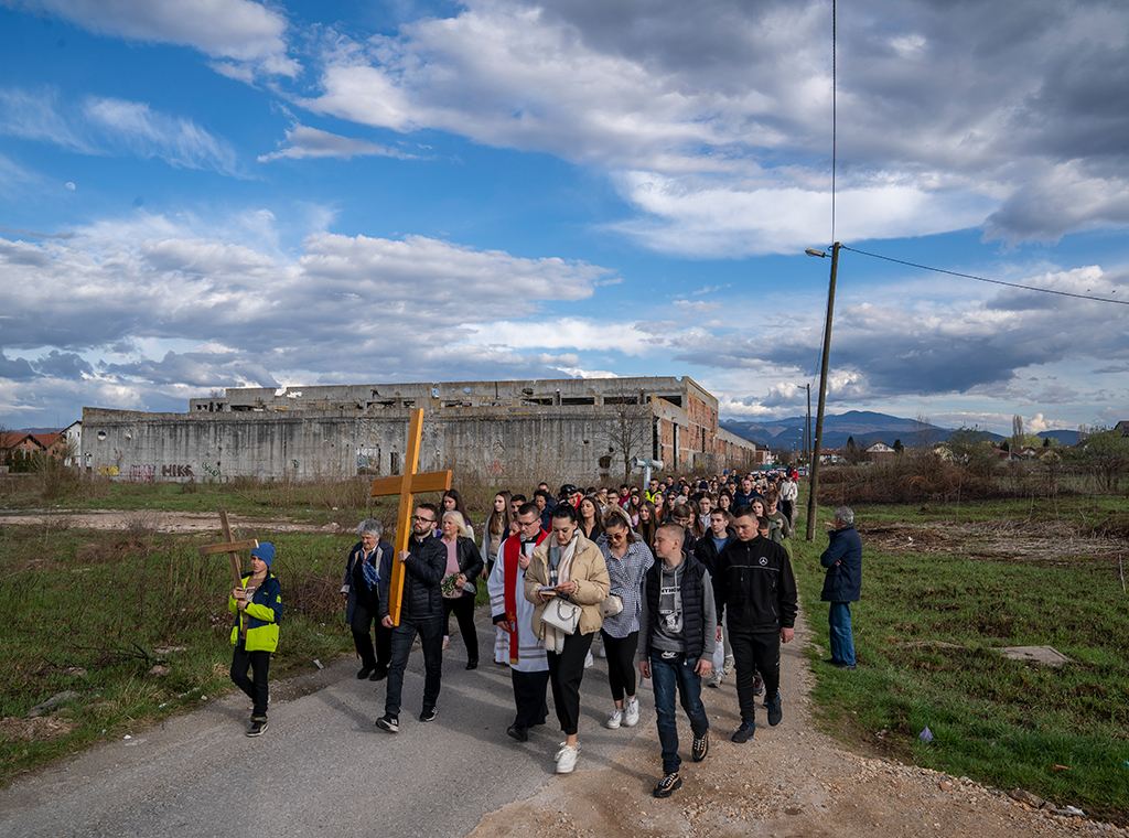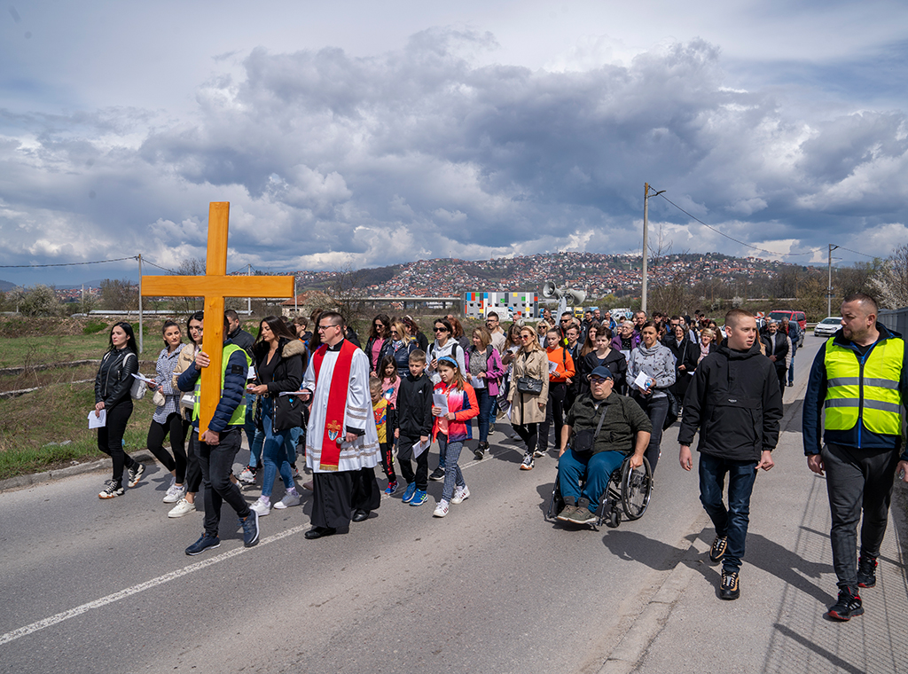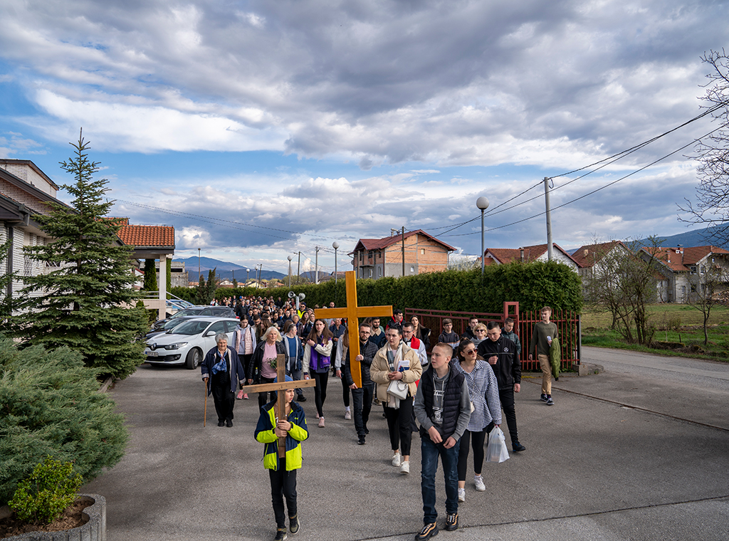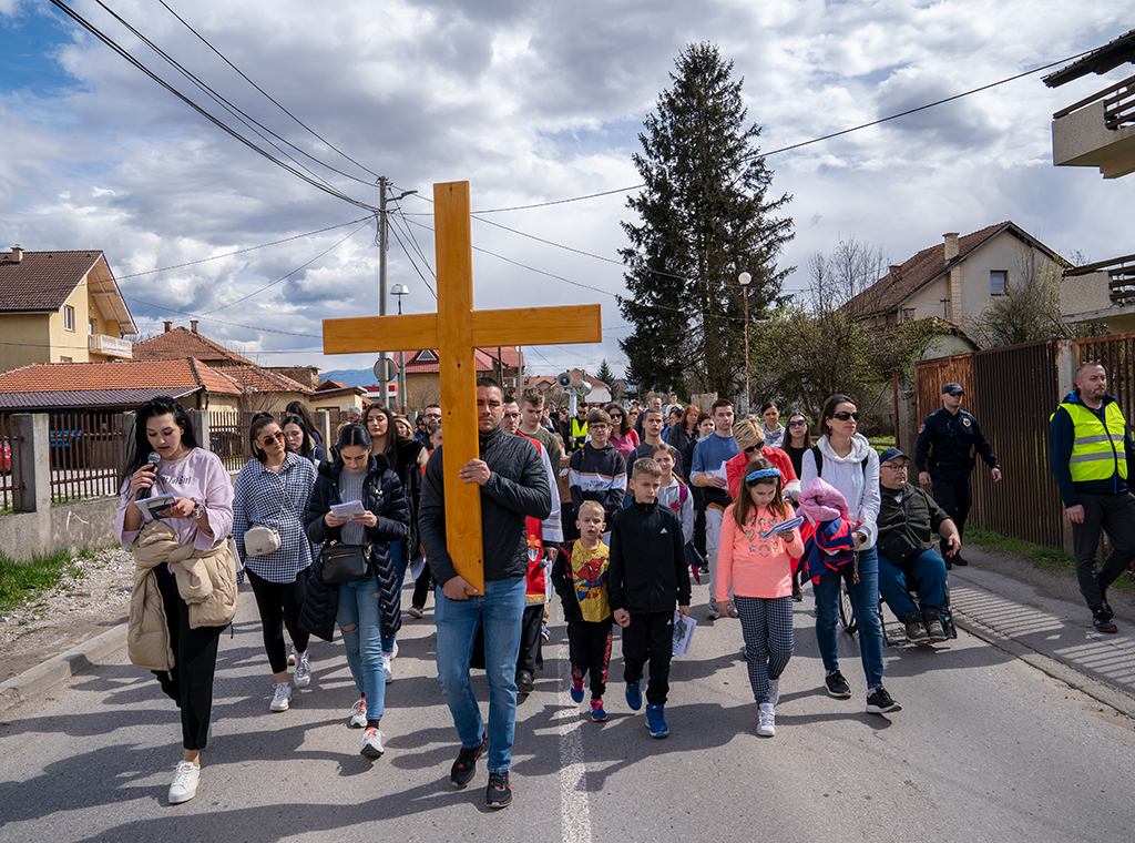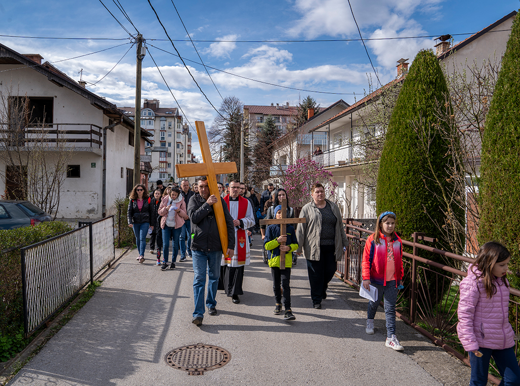 Dekanatski križni put mladih nakon tri godine pauze zbog pandemije koronavirusa održan je na Cvjetnicu, 2. travnja u sarajevskoj župi Uznesenja BDM-a Stup.