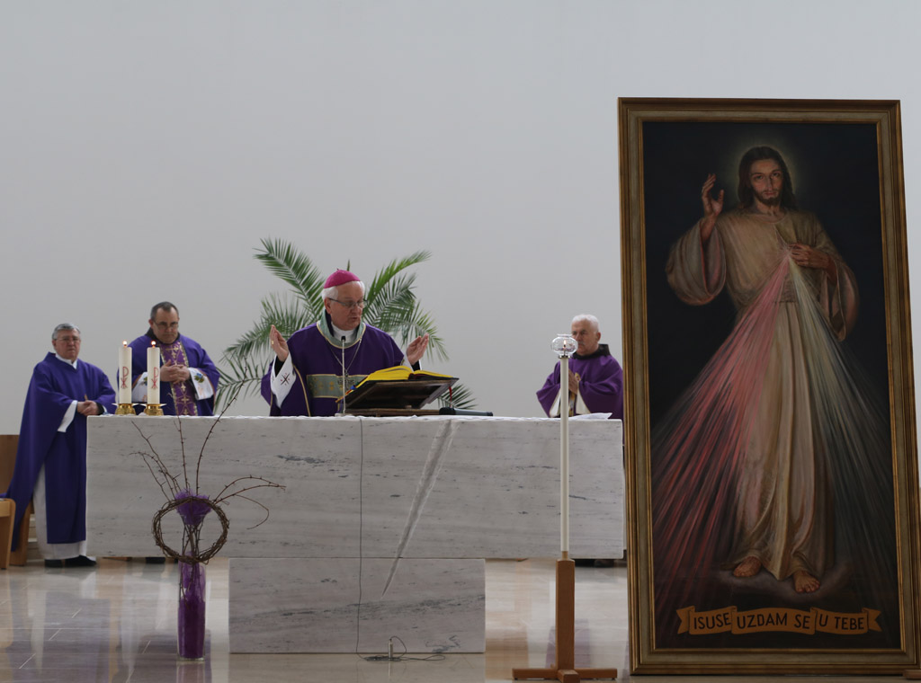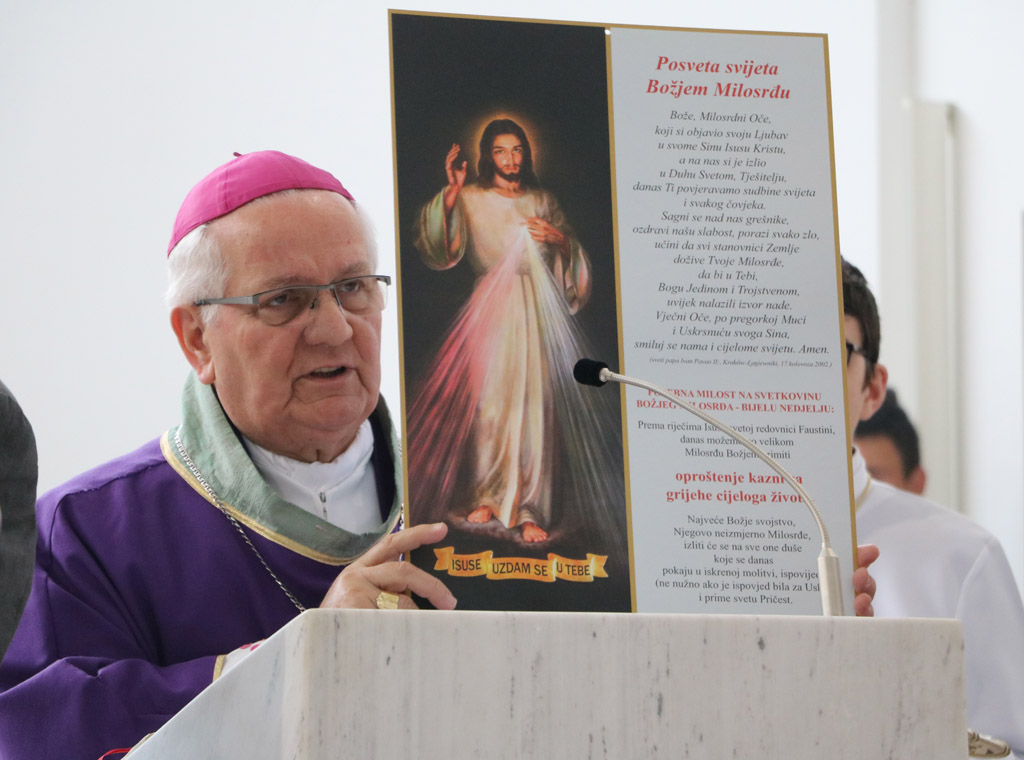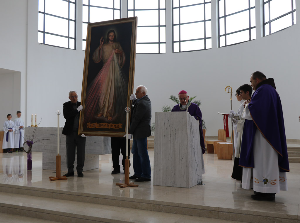 Biskup je na početku misnog slavlja protumačio razlog "hodočašća" slike Milosrdnog Isusa. Pojasnio je da je to "dug naše biskupije baštini velikog i Sv. Ivana Pavla II., koji je 2003. pohodio Banjolučku biskupiju i proglasio blaženim Ivana Merza. Isti je papa proglasio svetom redovnicu Faustinu Kowalsku i snažno naglasio potrebu uvažavanja od strane Božjeg naroda sadržaje objave Milosrdnog Isusa toj svetoj redovnici".