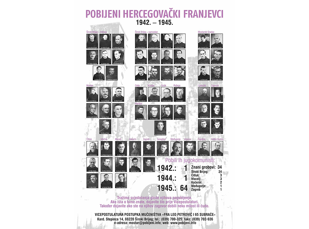 Želeći njegovati spomen na 66 hercegovačkih franjevaca, koje su kao nevine tijekom i u poraću Drugoga svjetskog rata pobili jugokomunisti, Vicepostulatura postupka mučeništva »Fra Leo Petrović i 65 subraće« raspisala je natječaj na temu "Pobijeni hercegovački franjevci".