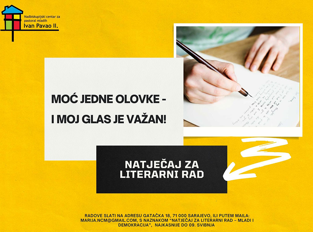S ciljem poticanja mladih na razvoj kritičkog mišljenja i izražavanja vlastitih stavova, NCM "Ivan Pavao II." i ove godine raspisuje natječaj za literarni rad u okviru projekta "Mladi i demokracija – Vision is decision", na temu "Moć jedne olovke – I moj glas je važan!"