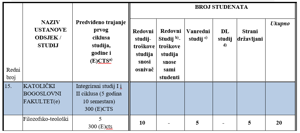 - Za studij na KBF-u, mogu se prijaviti kandidati katolici koji su završili isključivo četverogodišnju srednju školu.