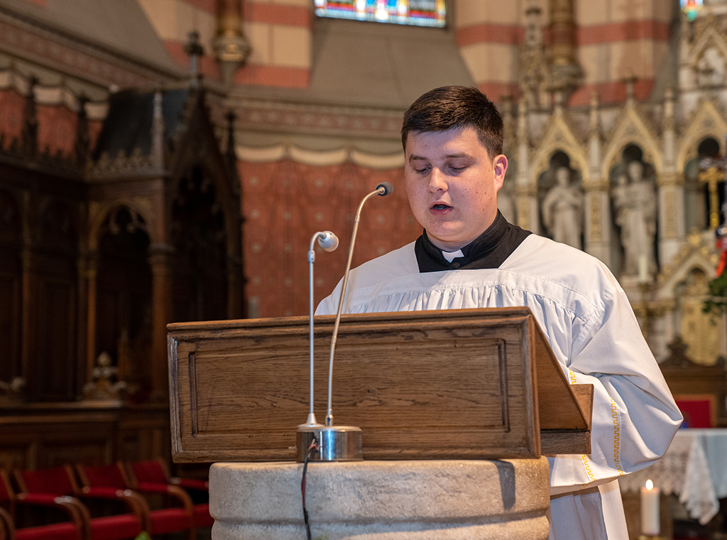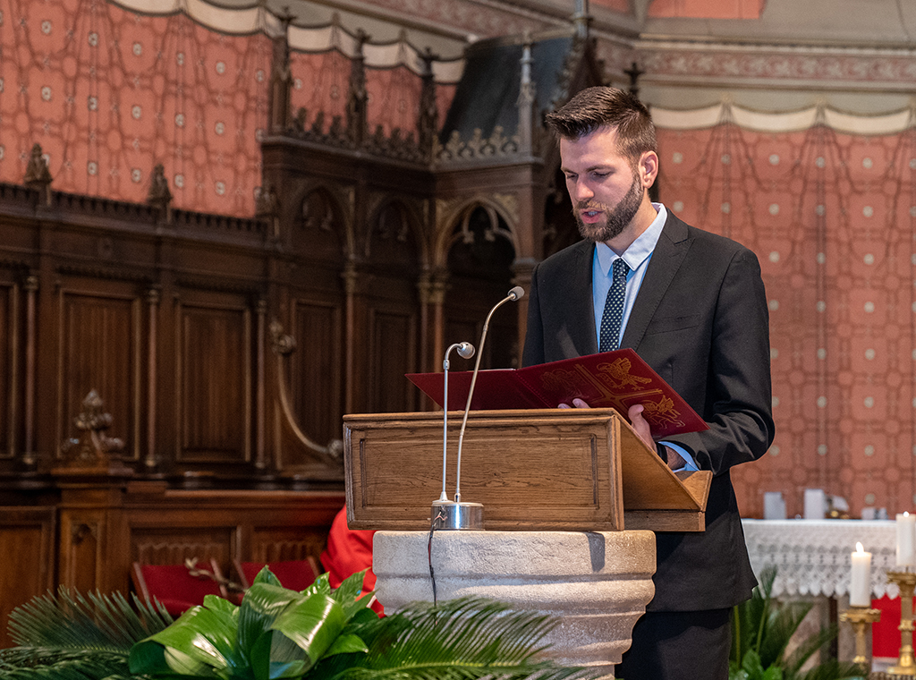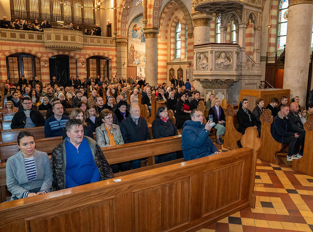 Nakon misnih čitanja, u navještaju Muke Gospodnje po Mateju ulogu Isusa imao je mons. Jurišić, narator je bio ceremonijar i profesor na KBF-u vlč. Ivan Rako, a druge uloge bile su dodijeljene članovima Katedralnog zbora Josip Stadler, koji je skladnim pjevanjem i animirao liturgijsko pjevanje u punoj prvostolnici.