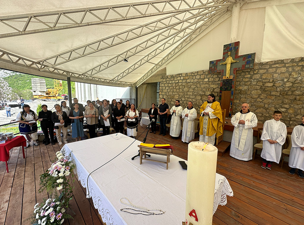 Misno slavlje na vanjskom oltaru svetišta predvodio je župnik fra Filip Karadža, a u koncelebraciji su bili definitor Provincije Bosne Srebrene i područni i nacionalni duhovni asistent Franjevačkog svjetovnog reda (OFS) fra Miro Relota, duhovni asistent mjesnog bratstva OFS-a Podmilačje fra Nikica Vujica i duhovni asistent mjesnog bratstva OFS-a Guča Gora fra Pero Vrebac. Na slavlju su sudjelovali i brojni trećoredci iz župa Busovača, Nova Bila, Vitez, Bučići, Novi Travnik i Guča Gora koje je predvodila Mirjana Biljaka, nacionalna tajnica OFS-a BiH i koordinatorica bratstava travničkoga kraja.