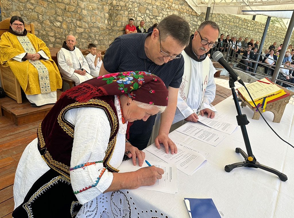 Na kraju sv. mise upriličeno je i klanjanje pred Presvetim, a zatim je dugogodišnjoj ministri mjesnog bratstva OFS Podmilačje Mandi Martinović, u znak zahvalnosti za predano služenje ovom mjesnom bratstvu OFS i mjesnoj Crkvi, župnik fra Filip uručio sliku Gospe Olovske, a Marijan Begić jeruzalemsku krunicu.