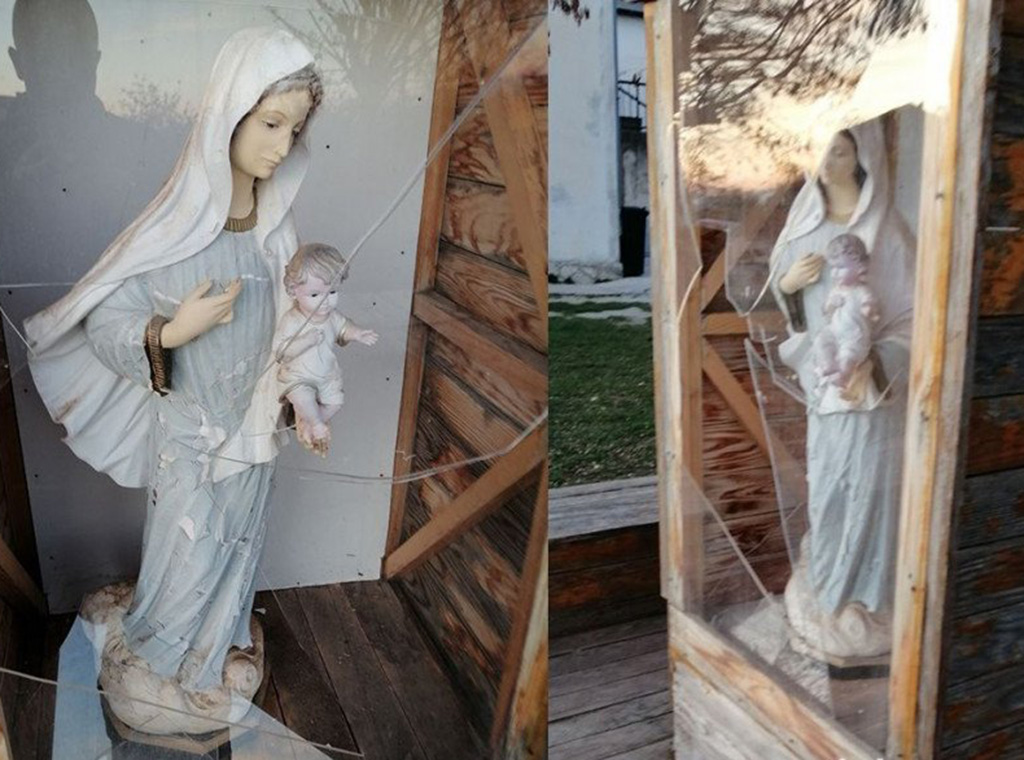 Kip uz prometnicu prema Stjepan Krstu je najvjerojatnije razbijen čekićem kao i staklo koje ga je štitilo. Međutim, sličan vandalski čin primijećen je i u utorak, 24. studenog kod OŠ Hodovo gdje je netko slomio staklo na kipu Gospe, ali na sreću, kip je ostao netaknut.