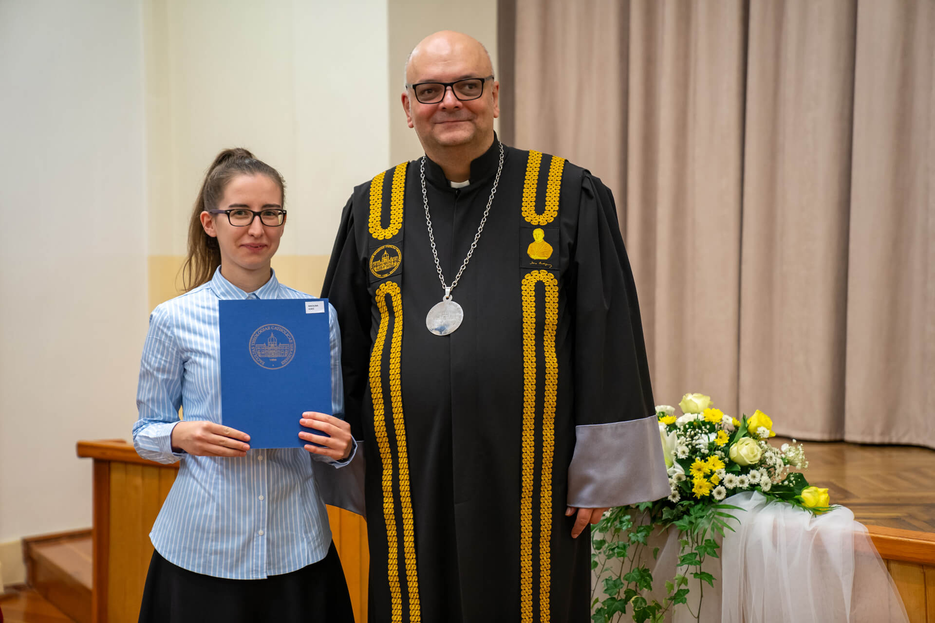 Potom je Nagrada dekana za najbolji uspjeh uručena Nikolini Jukić, studentici koja je u protekloj akademskoj godini 2024./2025. položila sve ispite IV. godine studija postigavši uspjeh 9,64. I to četvrti put! Nagrada dekana za najbolji studentski pisani/znanstveni rad u protekloj akademskoj godini 2024./2025. dodijeljena je Dariu Adžiću, koji je svoj rad, pod nazivom Mjesto pneumatologije u teologiji Josepha Ratzingera, napisao pod mentorstvom izv. prof. dr. Hrvoja Kalema.