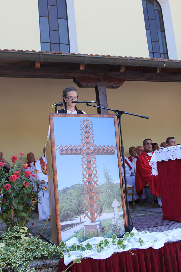 Uslijedilo je misno slavlje koje je predslavio mons. Vukšić. Na početku nazočne je pozdravio mjesni župnik don Ivo Tomić koji je između ostaloga kazao: „Svaki puta blagdan Uzvišenja Svetoga križa za nas na Uzdolu je žalosni dan zbog zločina koji se dogodio prije 25 godina.“