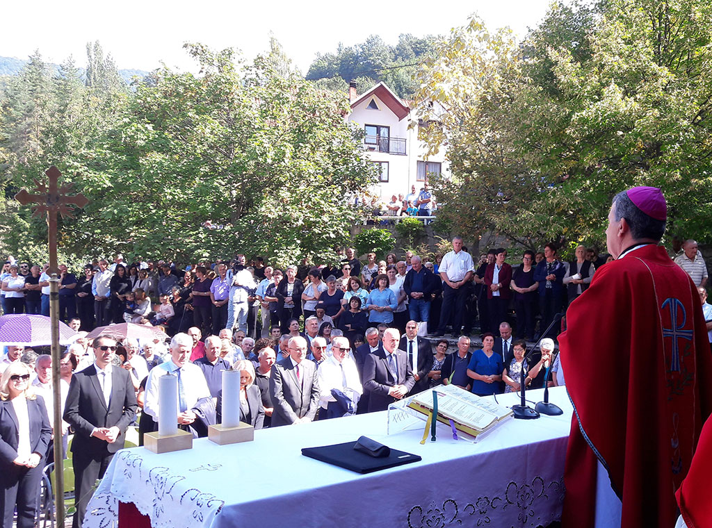 U prigodnoj propovijedi vojni ordinarij u BiH najprije je istaknuo kako Crkva danas proslavlja Uzvišenje Svetoga križa i to u petak koji je dan Isusove muke. „Kao vjernici molimo za vječni pokoj ubijenih, za hrabru vjeru članova ožalošćenih obitelji, rođaka i prijatelja, za obraćenje počinitelja zločina, za sprječavanje nasilja i ratova s usrdnom željom da se ovakvo zlo nikada više nigdje ne dogodi“, istaknuo je mons. Vukšić. U nastavku je kazao kako postoje različiti načina sjećanja, molitve i govora.