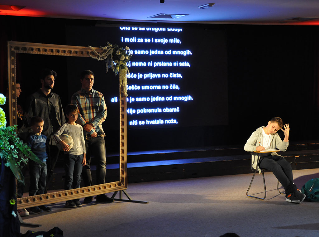 Uslijedio je scenski prikaz Budućnost tragove ne briše u kojoj su sudjelovali učenici, prof. Vesna Krajinović, ansambl Opće-realne gimnazije.