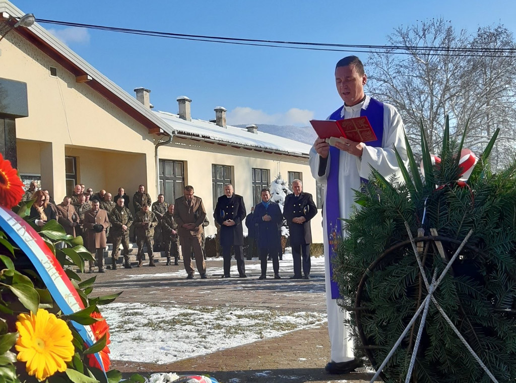 Svečanost je započela polaganjem vijenaca pred spomenikom u vojarni, odavanjem vojničke počasti poginulim pripadnicima brigade i molitvom odrješenja za pokojne koju je predvodio kancelar Vojnog ordinarijata don Josip Tadić, koji privremeno mijenja nedavno preminuloga vojnog kapelana don Jakova Pavlovića.