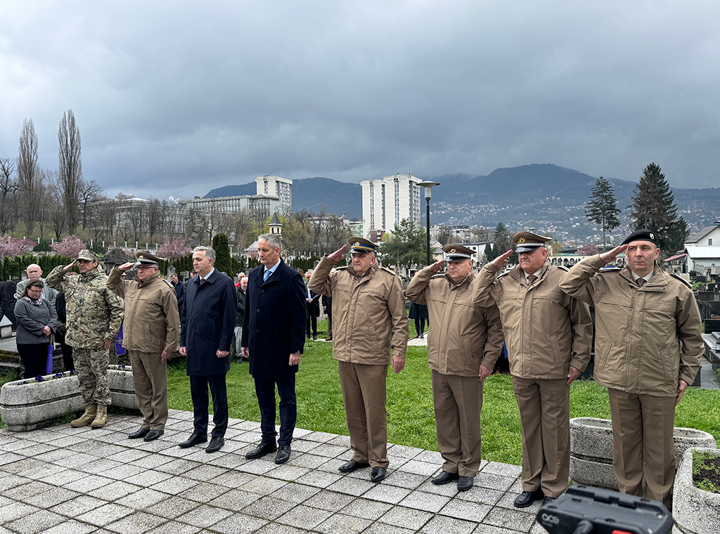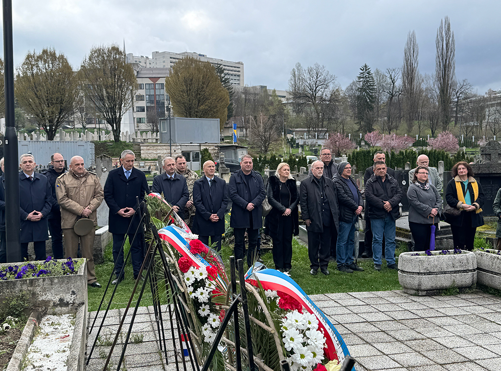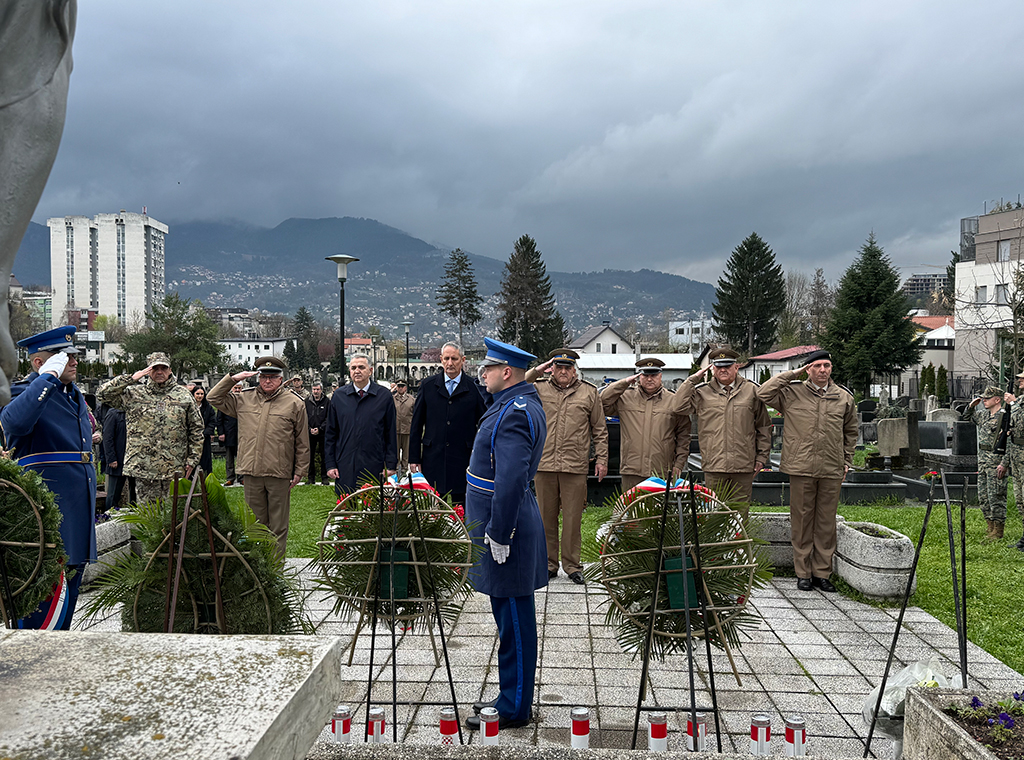Izaslanstvo Ministarstva obrane i Oružanih snaga Bosne i Hercegovine, na čelu sa zamjenikom ministra obrane BiH za politiku i planove Slavenom Galićem u srijedu, 2. travnja, položilo je vijence na Rimokatoličkom groblju Sveti Josip u Sarajevu, a u povodu obilježavanja 20. obljetnice utemeljenja 1. pješačke (gardijske) pukovnije OS BiH i 33. obljetnice utemeljenja Hrvatskoga vijeća obrane.