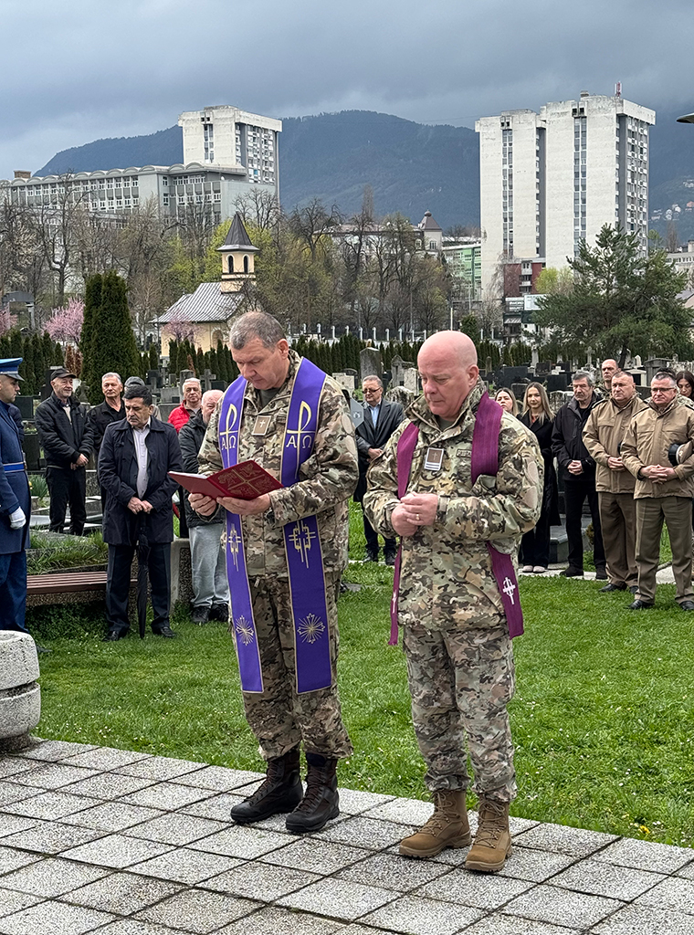 U izaslanstvu MO i OS BiH, uz ostale, bili su: zapovjednik Zapovjedništva za potporu OS BiH general-bojnik Zdravko Rezo i pomoćnik ministra obrane BiH za međunarodnu suradnju Zoran Šajinović. Molitvu odrješenja (opijelo) za duše pokojnih pripadnika HVO-a i OS BiH predvodili su generalni vikar Vojnog ordinarijata u BiH mons. Željko Čuturić i brigadni kapelan vlč. Fabijan Stanušić.