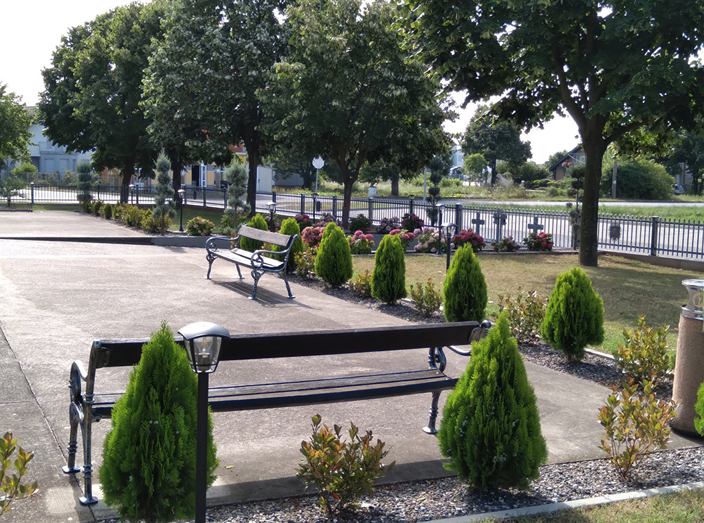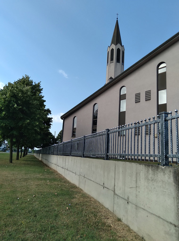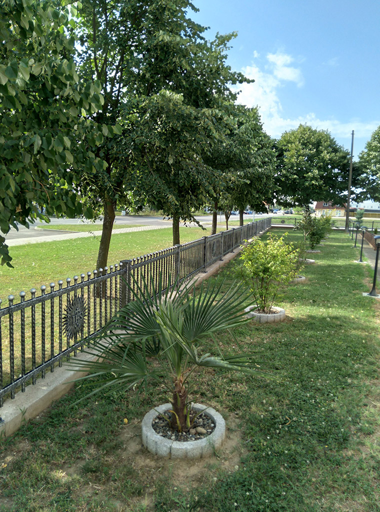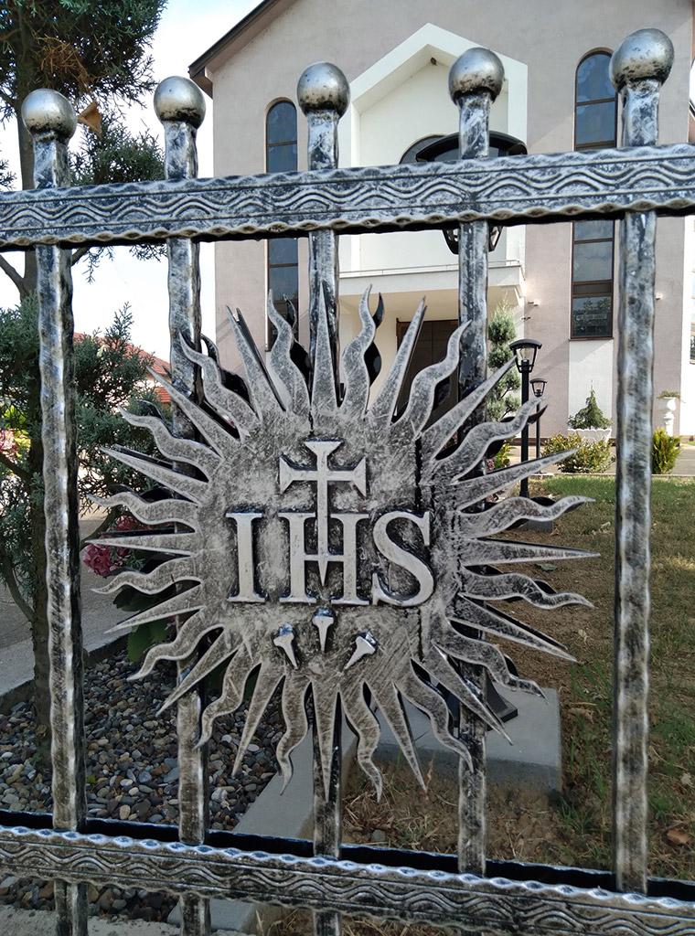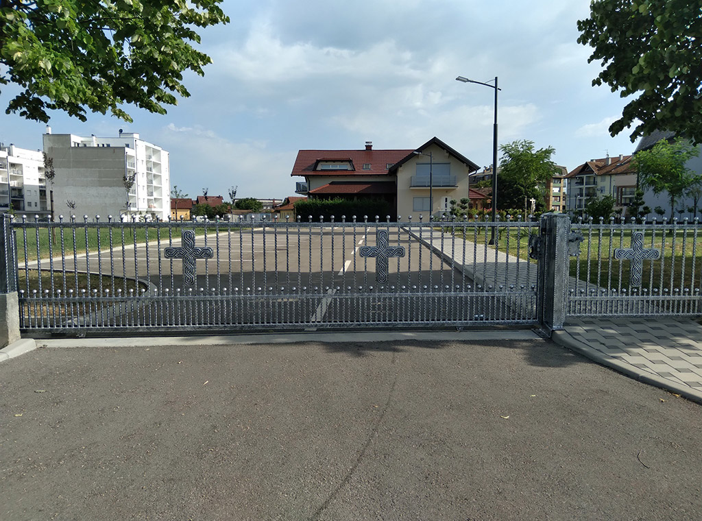 U dužini 150 metara na unutarnjoj i vanjskoj strani nove kovane ograde, u produžetku na svakom drugom dijelu, postavljeno je 54 Kristova monograma IHS, a na četiri ulazne kapije 14 križeva s starohrvatskim pleterom.