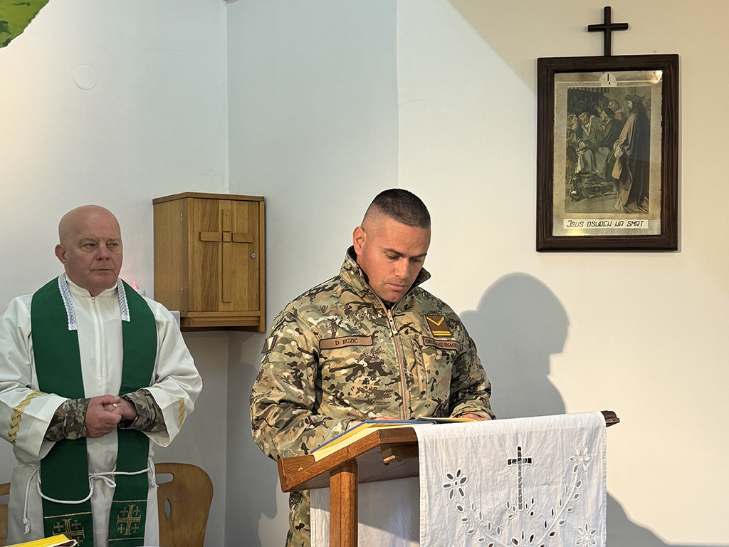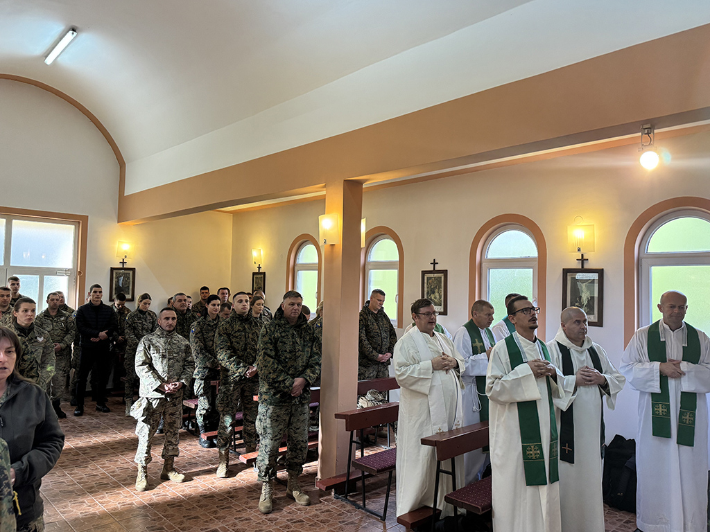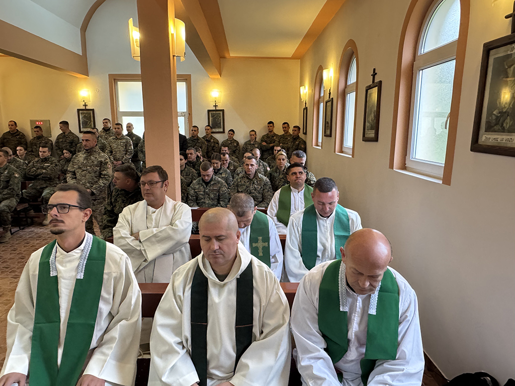 Nakon sastanka uslijedilo je misno slavlje u kapeli Sv. Martina koju je predslavio mons. Vukšić. Na početku vojni kapelan don Ljubo Zelenika pozdravio je nazočne.