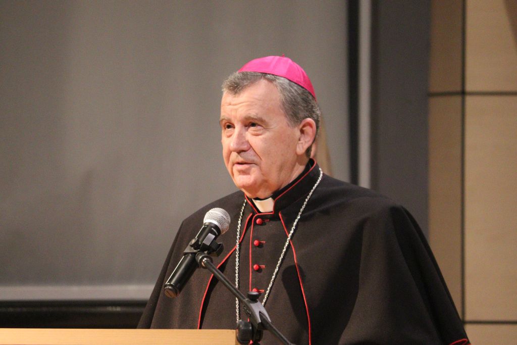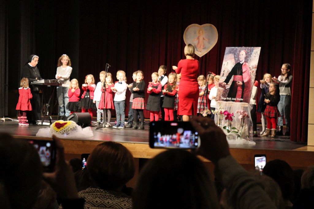 Istaknula je da je svjedočanstvo ljubavi prema bližnjemu na osobit način ostavio u baštinu sluga Božji nadbiskup Stadler „utemeljitelj Družbe sestara Služavki Maloga Isusa čije članice svjedoče Božju ljubav prema bližnjima na ovim prostorima već 135 godina“. Naglasila je da je životno geslo sluge Božjega Stadlera „Imaj srce…“ večeras geslo svih koji su u ovoj dvorani.
