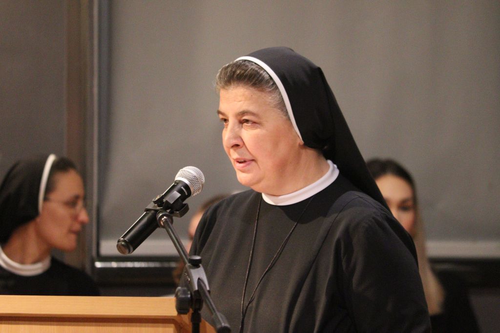Budući da je koncert posvećen 135. obljetnici Družbe SMI ispripovjedila je Stadlerovu priču o njezinu začetku te zatim naglasila: „Bogu smo zahvalni za izvanredni dar koji je darovao ovoj zemlji, našoj mjesnoj Crkvi i narodu po svome sluzi Josipu Stadleru, velikom prijatelju malenih. Misija njegova velikog srca nastavlja se i danas u Stadlerovom dječjem Egiptu kao i u drugim gradovima u Bosni i Hercegovini i izvan njezinih granica po služenju sestara i po i svima nama koji im pomažemo.“ Potom je pozvala fra Petra Karaijcu da u ime provincijala Bosne Srebrene fra Zdravka Dadića pozdravi nazočne.