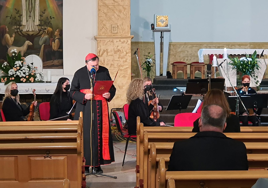 Prije samog izvođenja djela auditoriju se obratio i vrhbosanski nadbiskup Vinko kard. Puljić koji je i sam podržao održavanje koncerta. „Drago mi je da se to događa u Zenici, kako bi iz ovog grada bila poslana plemenita poruka duhovno-kulturnog događanja. Nalazimo se u crkvi Sv. Josipa čiji ćemo blagdan uskoro slaviti pa neka zaštitom ovoga sveca budu obuhvaćene sve obitelji, svi radnici, a na poseban način oni kojima je ovaj koncert posvećen“, rekao je kardinal Vinko uz poruku: „U ovom ozračju koronavirusa neka se razbija strah koji se u javnosti nameće i neka se nadvije istinska ljubav za čovjeka, za život za ono što oplemenjuje čovjeka i vraća mu nadu.”