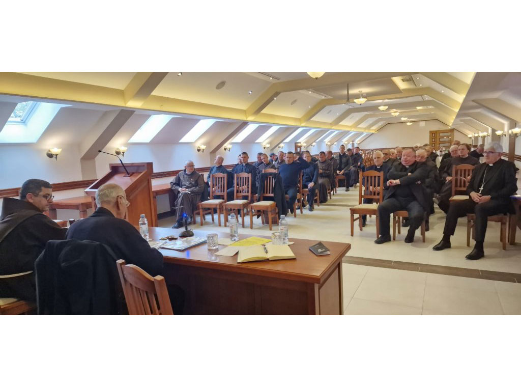 Okupljenih 50-ak svećenika, uključujući i svećenike iz samostana, susrelo se s biskupom ordinarijem mons. Željkom Majićem i pomoćnim biskupom, generalnim vikarom dr. mons. Markom Semrenom.