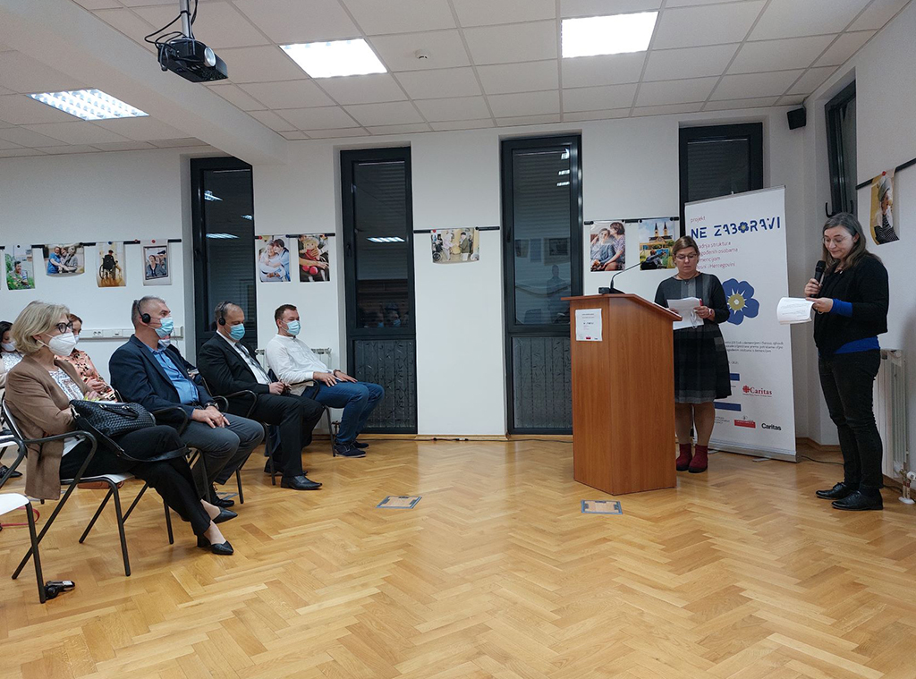Koordinatori projekta Ne zaboravi Žaklina Garić i Ante Bender su prezentirali rezultate ovog trogodišnjeg projekta u kojem je 91 osoba s demencijom primila stručnu njegu i skrb prilagođenu njihovim potrebama u Caritasovim domovima za starije osobe u Banja Luci i Čapljini. Izvršeno je opremanje i prilagođavanje prostora za osobe s demencijom u partnerskim ustanovama za ukupno 107 korisnika. Otvorena su tri dnevna centara za boravak osoba s demencijom u Banja Luci, Čapljini i Mostaru, čije su usluge do 30. rujna koristile 32 osobe. Psihosocijalna podrška i stručno savjetovanje članova obitelji se provodilo kroz tri savjetovališta u Banja Luci, Mostaru i Čapljini te kroz Mobilnu skrb. Usluge savjetovanja pružene su za 440 članova obitelji, susjeda i volontera.