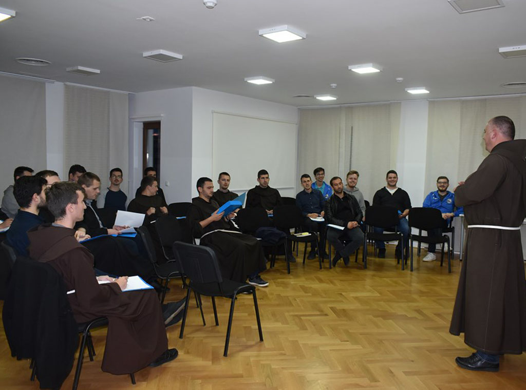 Prije večernje molitve sudionici su radili u dvjema skupinama. Župnici fra Josip i don Tomo razgovarali su s bogoslovima iznoseći vlastito iskustvo rada u župi, izazove i probleme s kojima se svakodnevno susreću te koji su načini rada s mladima, a koji sa starijim župljanima.