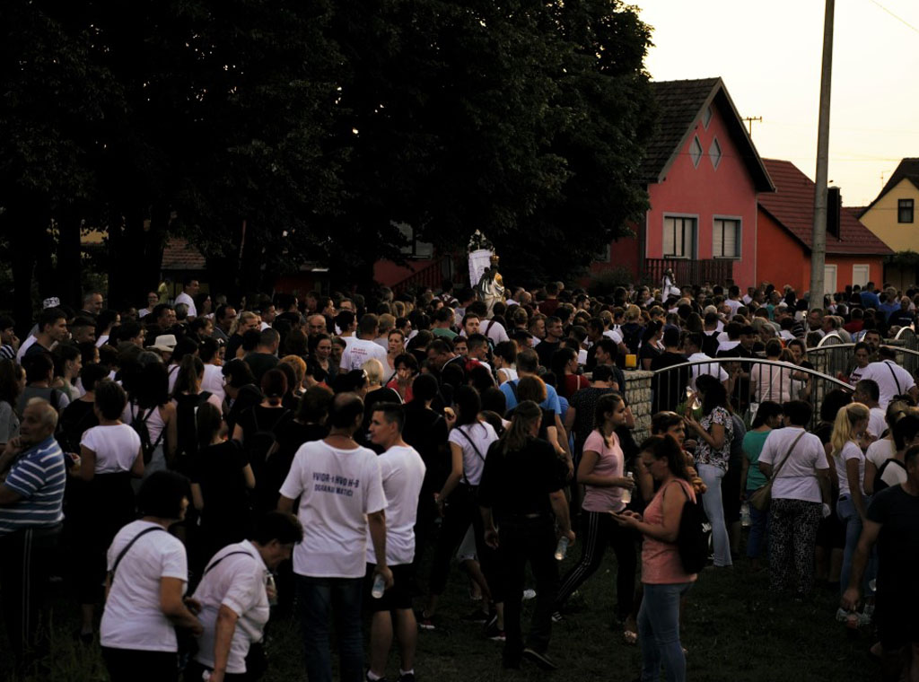 Oko 23:30 sati zavjetni Gospin kip s hodočasnicima vratio se pred samostansku crkvu, a potom je uslijedilo svečano ponoćno misno slavlje pod svjetlima zvjezdanog neba.