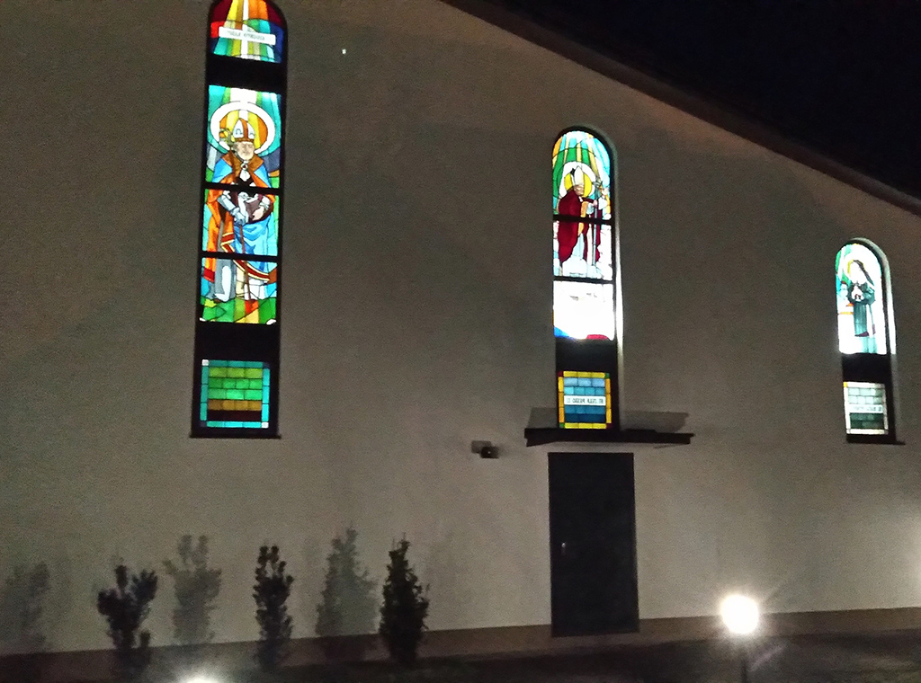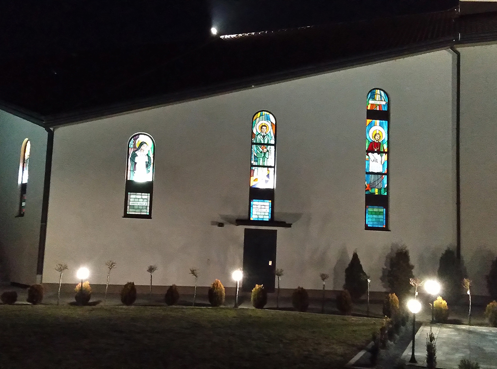 Postavljeni su reflektori koji obasjavaju osam vitraja u unutrašnjem prostoru crkve te na pročelju crkve i koru obasjana su pet vitraja pomoću led traka. Svi reflektori se pale automatski u isto vrijeme pomoću tajmera.