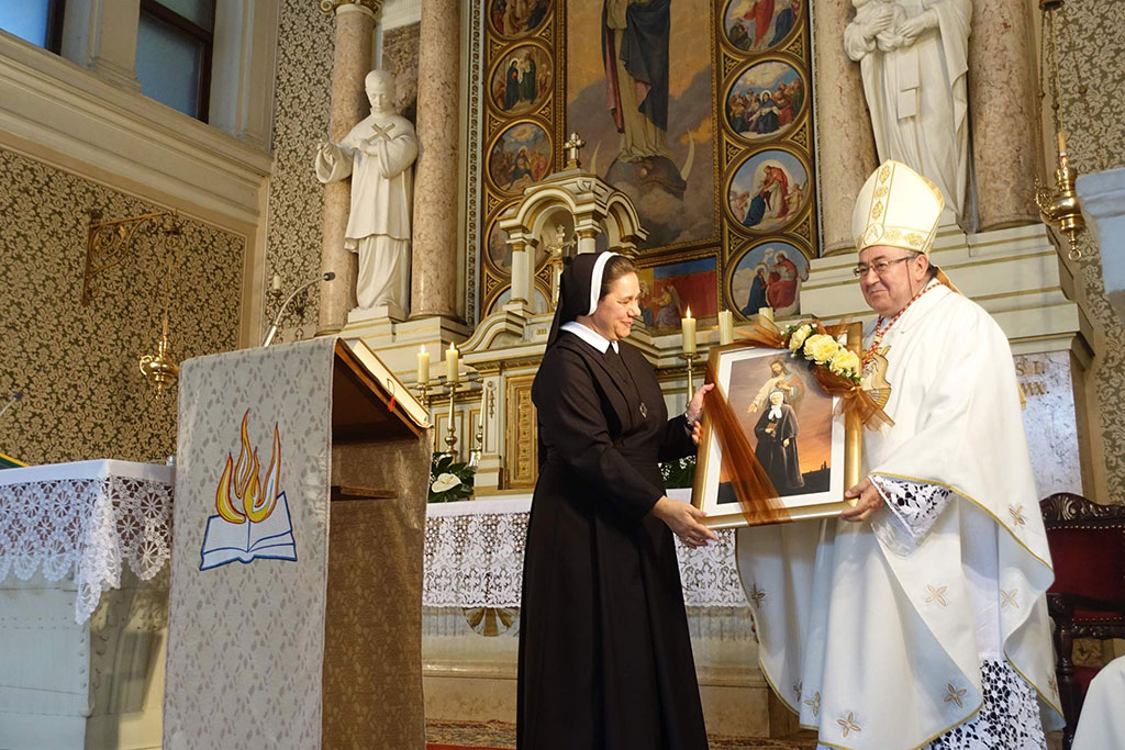 „Vjerujem da svi još nosimo dojmljiva sjećanja na taj veliki događaj za ovu mjesnu Crkvu i našu Družbu. Tu je i s. M. Danka Jurčević, koja je također svoju vjernost krvlju zapečatila. One su naši najsvjetliji likovi na koje smo posebno ponosne. Vjerujemo da mole i zagovaraju za našu Provinciju i Družbu, a posebno za ovu mjesnu Crkvu. Neka i ovo naše slavlje bude poticaj na svim razinama da još više i zauzetije radimo na širenju njihova glasa svetosti“, kazala je poglavarica zahvalivši svima koji su pridonijeli organizaciji proslave. U znak zahvalnosti predala je kardinalu Puljiću umjetničku sliku s. M. Luke Liengitz, rad akademskog slikara g. Davora Žilića iz Petrinje. Bogoslužje je završeno molitvom pred slikom Drinskih mučenica.