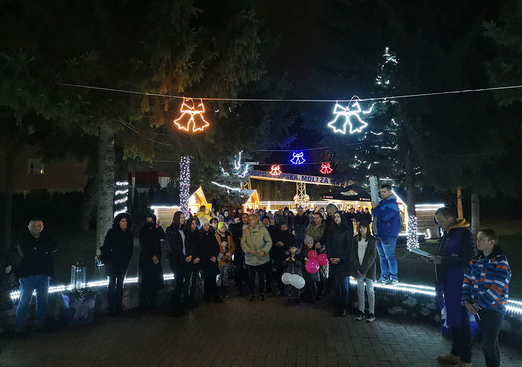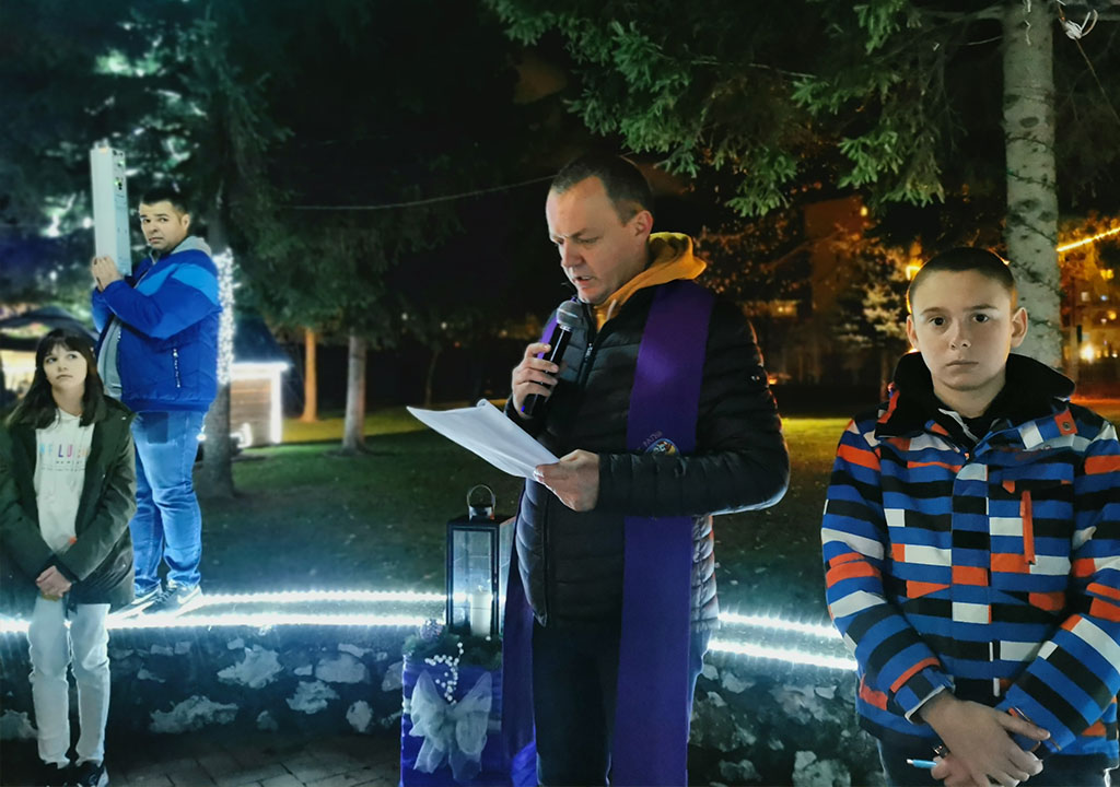 Okupljene vjernike na početku je pozdravio župnik vlč. Miroslav Ćavar te je, nakon uvodne molitve, na vanjskom vijencu mladi župljanin Marko Demirović upalio prvu adventsku svijeću. Uslijedio je duhovno-zabavni dio programa kojega su pjevanjem i sviranjem animirali supružnici Marija i Davor Stipić.