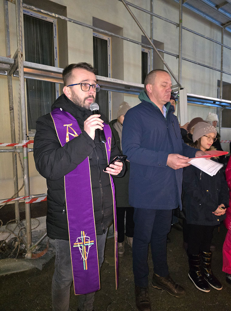 Nakon uvodnog pozdrava stupskog župnika i sarajevskog dekana preč. Miroslava Ćavara uslijedio je obred blagoslova adventskog vijenca u župnom dvorištu kojega je predvodio glasnogovornik Vrhbosanske nadbiskupije i župnik u Novom Sarajevu vlč. Dražen Kustura. U prigodnom nagovoru uz obred blagoslova vlč. Kustura istaknuo je kako je vrijeme došašća razdoblje pripreme za susret s Isusom Kristom. „Paljenjem prve svijeće, koja se često naziva i svijećom nade, započinjemo svoj ovogodišnji hod prema Božiću. Dovoljan je samo mali plamen kako bi svjetlo rastjeralo tamu. Ova svjetlost koju palimo na adventskom vijencu dolazi tiho, nenametljivo, ali ima moć koja preobražava. Ujedno nas poziva da i mi budemo prenositelji svjetla, odnosno nade te da svojim riječima i djelima u svoju sredinu unosimo dobrotu, mir i strpljivost. Ukoliko kroz iduća četiri tjedna netko u nama prepozna znak nade i osjeti našu dobrotu znat ćemo da smo imali blagoslovom ispunjeno vrijeme došašća“, kazao je glasnogovornik Vrhbosanske nadbiskupije.