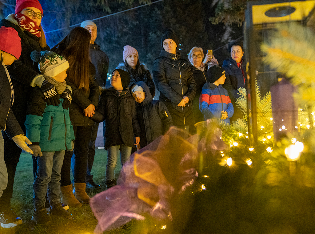 Na početku večeri župni vikar na Stupu vlč. Marin Babić blagoslovio je adventski vijenac u prelijepo ukrašenom župnom dvorištu nakon čega je upaljena i prva svijeća.
