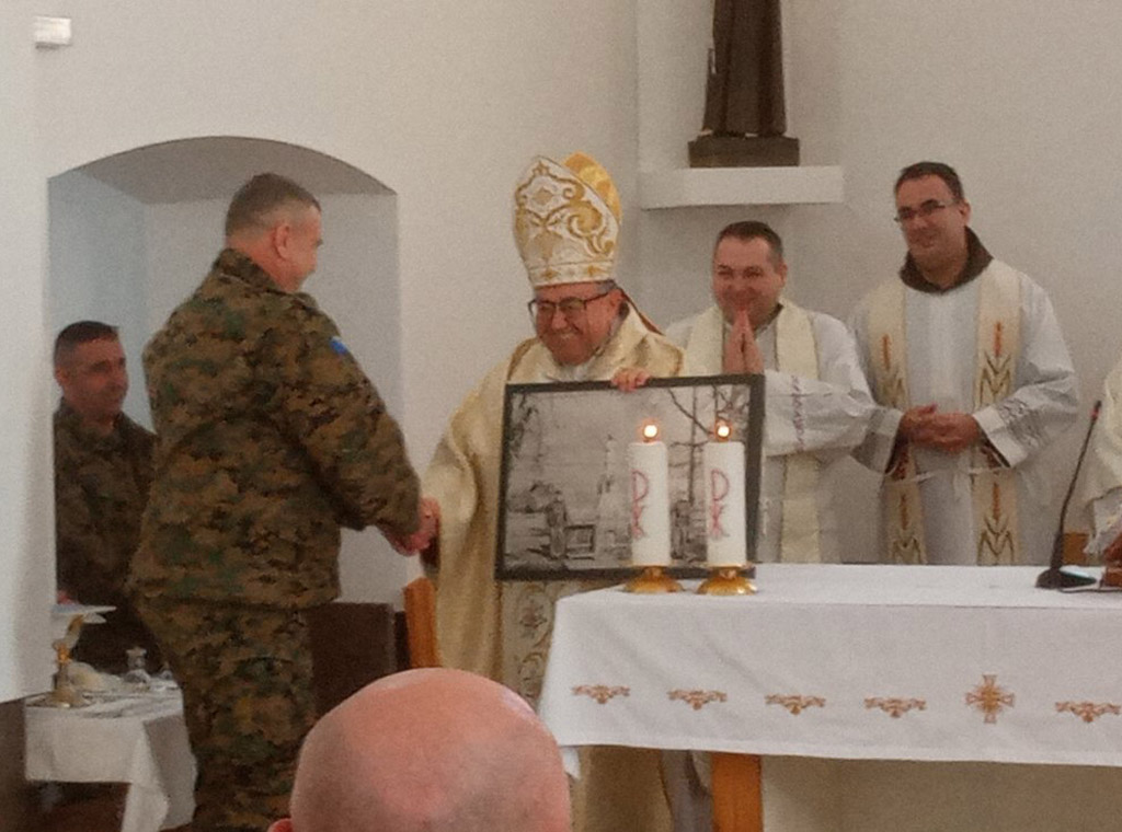 Na kraju mise don Goran je nadbiskupu u miru zahvalio na svemu što je učinio za katoličko dušobrižništvo u OS-u BiH. U ime vojne kapelanije u Travniku prigodni dar uručio mu je zapovjednik brigadir Slaven Blavicki.