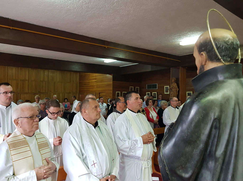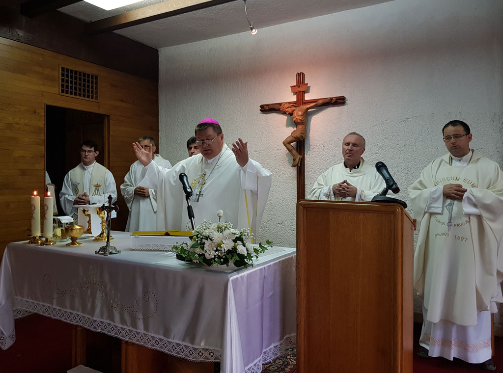 Svečano misno slavlje na blagdan Sv. Ignacija Lojolskog, u još uvijek improviziranom molitvenom prostoru, predslavio je biskup bjalovarsko-križevački Vjekoslav Huzjak. U koncelebraciji je bilo 20 svećenika, među kojima generalni vikar Vrhbosanske nadbiskupije mons. Luka Tunjić i provincijal Franjevačke provincije Bosne Srebrene fra Jozo Marinčić.