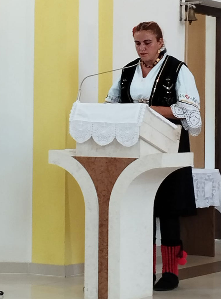 Na prigodno urešenoj bini u crkvenom dvorištu slijedila je poslije mise Smotra folklora čiji je program vodila Mladenka Kermenc.