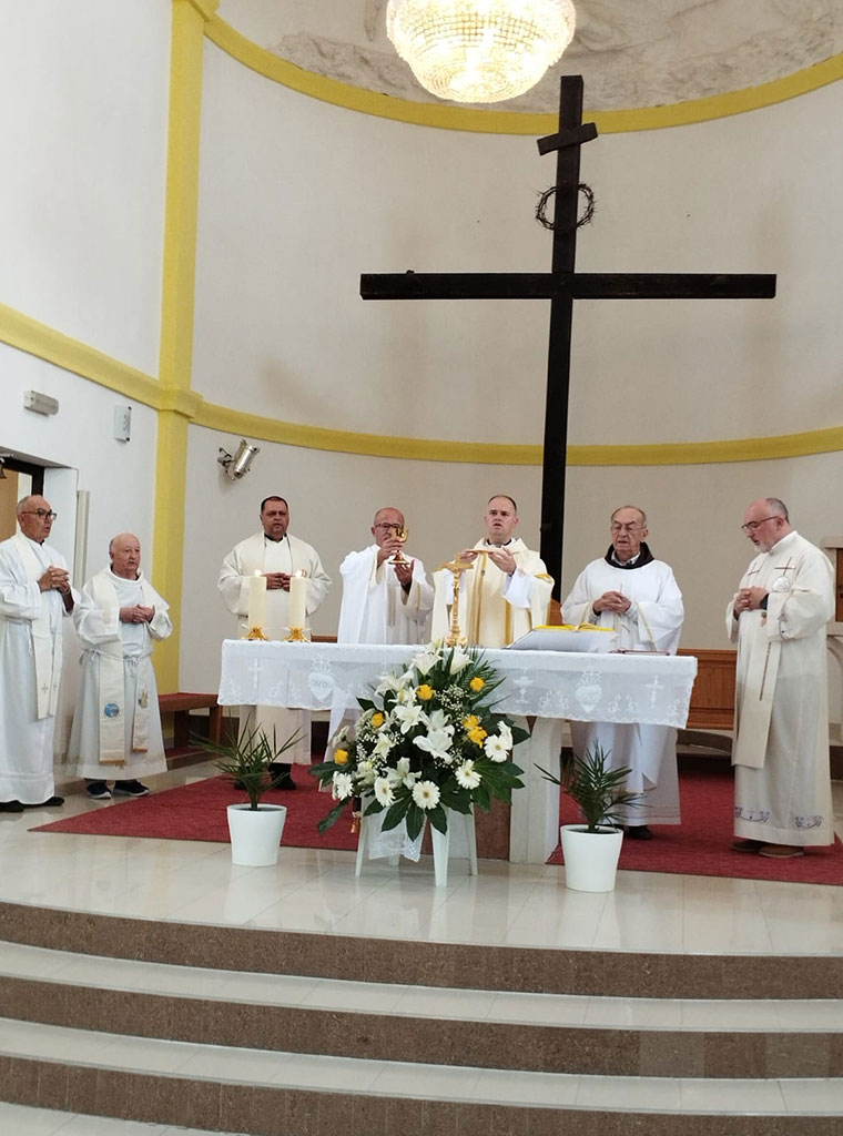 Sveto misno slavlje predvodio je dr. vlč. Hrvoje Kalem, profesor na sarajevskom KBF-u. Uz župnika vlč. Iliju Marinovića suslavili su: kancelar Vrhbosanske nadbiskupije i župnik u Novom Selu i Kulini preč. Mladen Kalfić, derventski dekan fra Ivan Marić, župnik u Gornjim Močilima-Sijekovcu vlč. Ivan Tolj, umirovljeni svećenik Riječke nadbiskupije mons. Pero Zeba, povratnik u Bijelo Brdo i svećenik u miru vlč. Branko Vincetić. Slavlje je pjevanjem animirao zbor župe Bezgrješnog Srca Marijina iz Slavonskog Broda.