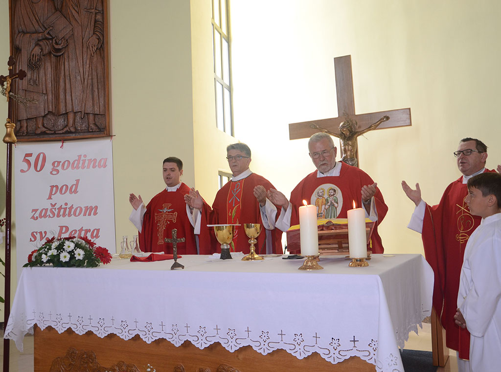 Svečano misno slavlje, kojim su obilježili i završetak jubilarne 50. obljetnice od osnivanja župe, uz župnika iz Bijelog Brda vlč. Vladu Vrebca, gvardijana franjevačkog samostana na Plehanu fra Antu Tomasa i hrvatskog svećenika na službi u Australiji vlč. Luku Pranjića, predvodio je domaći župnik vlč. Mato Marijić.