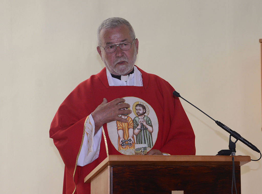 Vidljivo radostan zbog tako velikog broja svojih župljana, koji su župnu crkvu ispunili do kraja, župnik Marijić se prisjetio svojih mladenačkih dana kada je prije 50 godina – kada je i župa osnovana – odlučio krenuti putem svećeništva. Iskazao je svoju radost što kao domaći sin na svetkovinu apostolskih prvaka može i prvi puta propovijedati svojim sumještanima, a sada i župljanima. On je naime 39 godina služio u Njemačkoj te se prije godinu dana vratio u svoju u Kulinu. Zahvalio je Gospodinu što je njegova župa u pola stoljeća svoga djelovanja iznjedrila šest duhovnih zvanja: četvoricu svećenika i dvije redovnice. Svjestan svih poteškoća i slabog povratka u tu župu u kojoj je prija zadnjega rata živjelo 950 Hrvata katolika, a danas ih stalno živi njih tek sedmero, pozvao je svoje nekadašnje sumještane da se poput svojih nebeskih zaštitnika Sv. Petra i Pavla stave Bogu na raspolaganje.