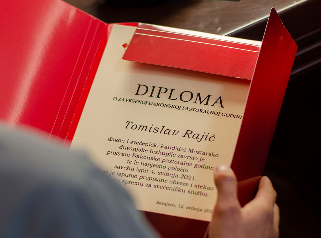 Diplome je dobilo 20 đakona iz: Vrhbosanske nadbiskupije (3), Mostarsko-duvanjske biskupije (4), Franjevačke provincije Bosne Srebrene (8), Hercegovačke franjevačke provincije (4) i Hrvatske dominikanske provincije (1) koji su u prethodnoj godini pohađali program zajedničke Pastoralne godine na razini Biskupske konferencije BiH, koja je prvi put održana u tom obliku, te su uspješno položili završni ispit. Time su stekli potrebne uvjete za svećeničko ređenje.