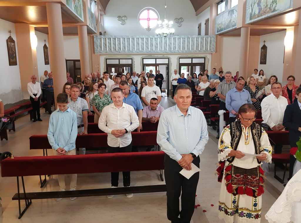 Na početku misnoga slavlja župnik vlč. Mato Janjić predstavio je krizmenike, pozdravio je njihove kumove, roditelje, braću svećenike i nadbiskupa Tomu.