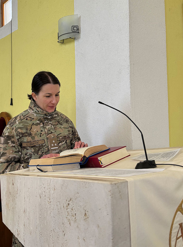 Misno slavlje predvodio je generalni vikar Vojnog ordinarijata u BiH mons. Željko Čuturić. U uvodnom govoru mons. Čuturić osvrnuo se na riječi iz Evanđelja po Marku: “Evo mi sve ostavismo i pođosmo za tobom!”, posvijestivši kako ta poruka prenosi vjernicima da se uistinu zapitaju koliko oni svojim odricanjem i molitvom zapravo hode kroz korizmeno vrijeme dajući sebe za Isusa Krista.