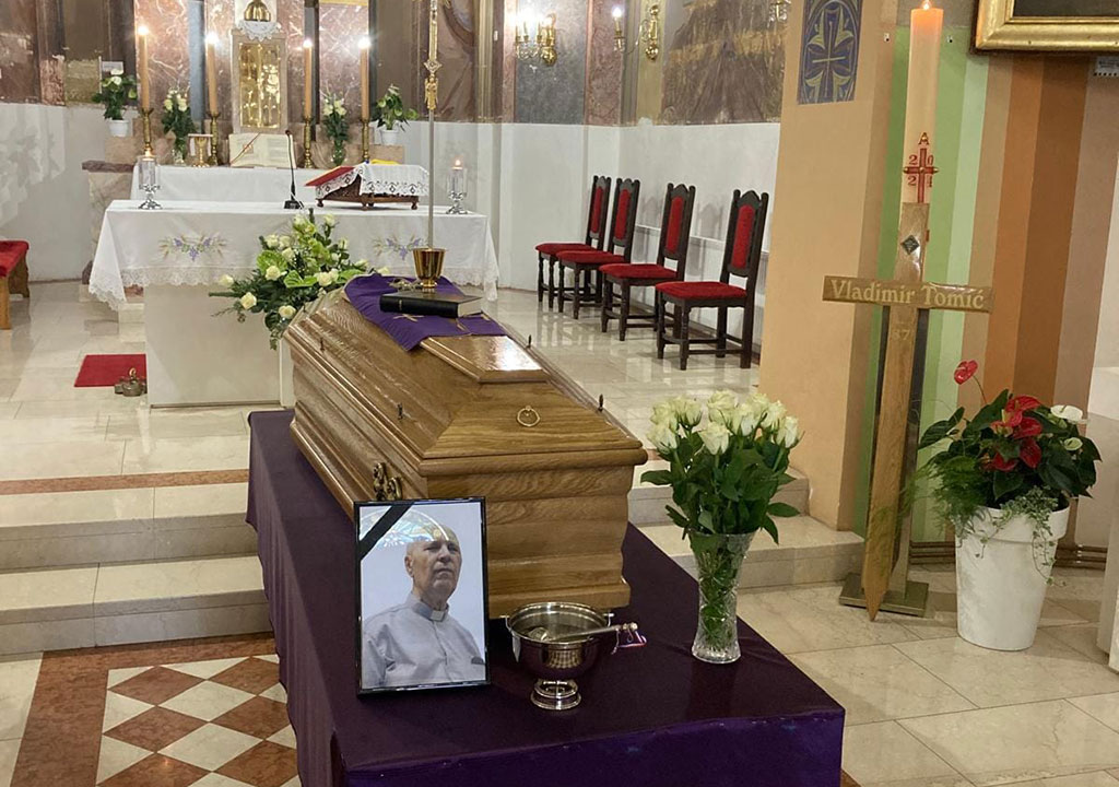 Pogrebne obrede i misu za svećenika Vladimira Tomića, koji je preminuo u ponedjeljak, 25. studenoga predvodio je u četvrtak, 28. studenoga banjolučki biskup Željko Majić, u zajedništvu s mons. Zlatkom Korenom i drugim svećenicima u crkvi Uznesenja blažene Djevice Marije u Oroslavju.