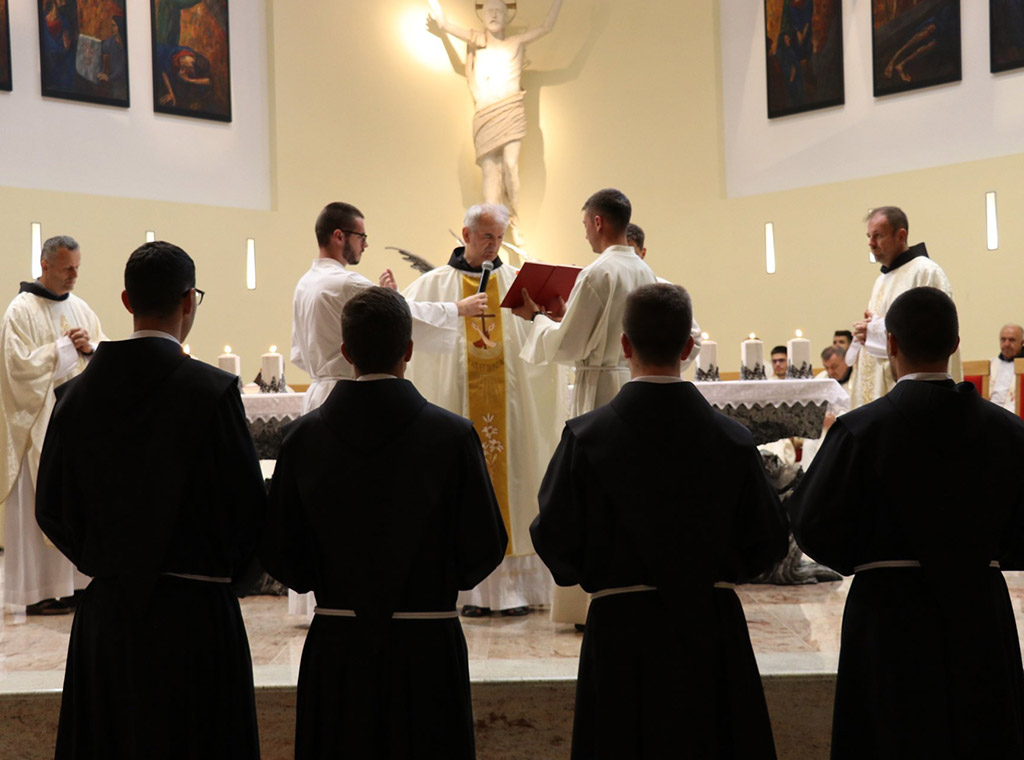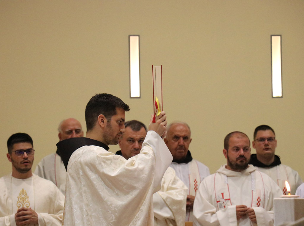 Misno slavlje predvodio je provincijal fra Jozo Grbeš, u koncelebraciji s meštrom novaka fra Stankom Mabićem, gvardijanom fra Darijem Dodigom, župnicima zavjetovanika i još dvadesetak svećenika. Fra Jozo se obratio prigodnim riječima zavjetovanicima i govorio im o važnosti riječi koju će izgovoriti, te da te riječi zavjetovanja ne znače ništa ako iza tih riječi neće stajati svjedočanstvo njihova života. Nakon propovijedi uslijedio je obred zavjetovanja, javlja Hercegovački info portal.