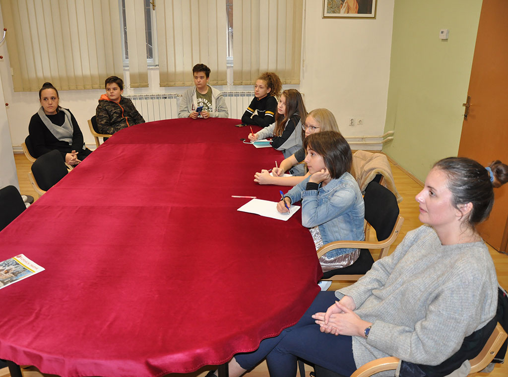 Predvođeni prof. vjeronauka Mandalenom Trgovčević i prof. hrvatskog jezika i književnosti Ivanom Mostarac, osnovnoškolci su došli upoznati se s radom u redakciji o kojemu im je govorila novinarka Tina Matić Ilić.