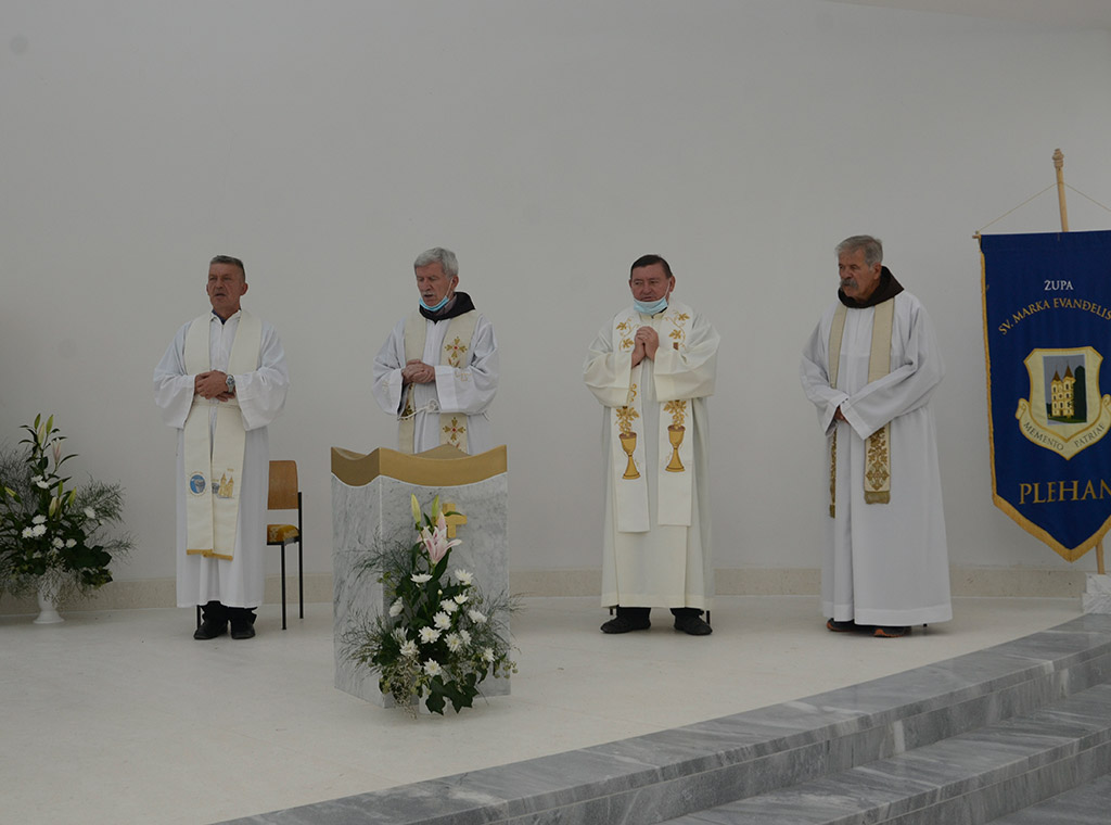 Prethodno je svetu misu slavilo 12 svećenika, a predvodio ju je fra Drago Pranješ, gvardijan franjevačkog samostana i župe Sv. Franje Asiškog u Gučoj Gori. Prigodnu homiliji uputio je plehanski gvardijan fra Anto Tomas.