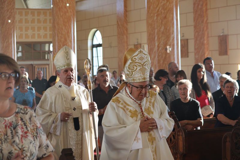 „Danas, kad smo okupljeni u ovoj crkvi, u kojoj se na osobit način štuje Sveta Obitelj, a u povodu podržavanja šestog dana molitve naše Biskupske konferencije za obitelji u svim našim župama i biskupijskim zajednicama, naravno da se sama od sebe u ovom razmišljanju nameće tema obitelji. Kada tome dodamo da smo ovih dana proslavili i blagdan svetih Joakima i Ane, Marijinih roditelja, a Isusova djeda i bake po majci, onda se dodatno čini vrlo važnim ne samo moliti, nego i razmišljati o našim obiteljima. Uz to sretna je okolnost da cijela Crkva ovih dana obilježava Dan starijih osoba, upravo djedova i baka, i tako u zajedništvu triju generacija moli za obitelj, u zajedništvu triju generacija živi obitelj i izgrađuje obitelj“, kazao je nadbiskup Vukšić u prigodnoj propovijedi.