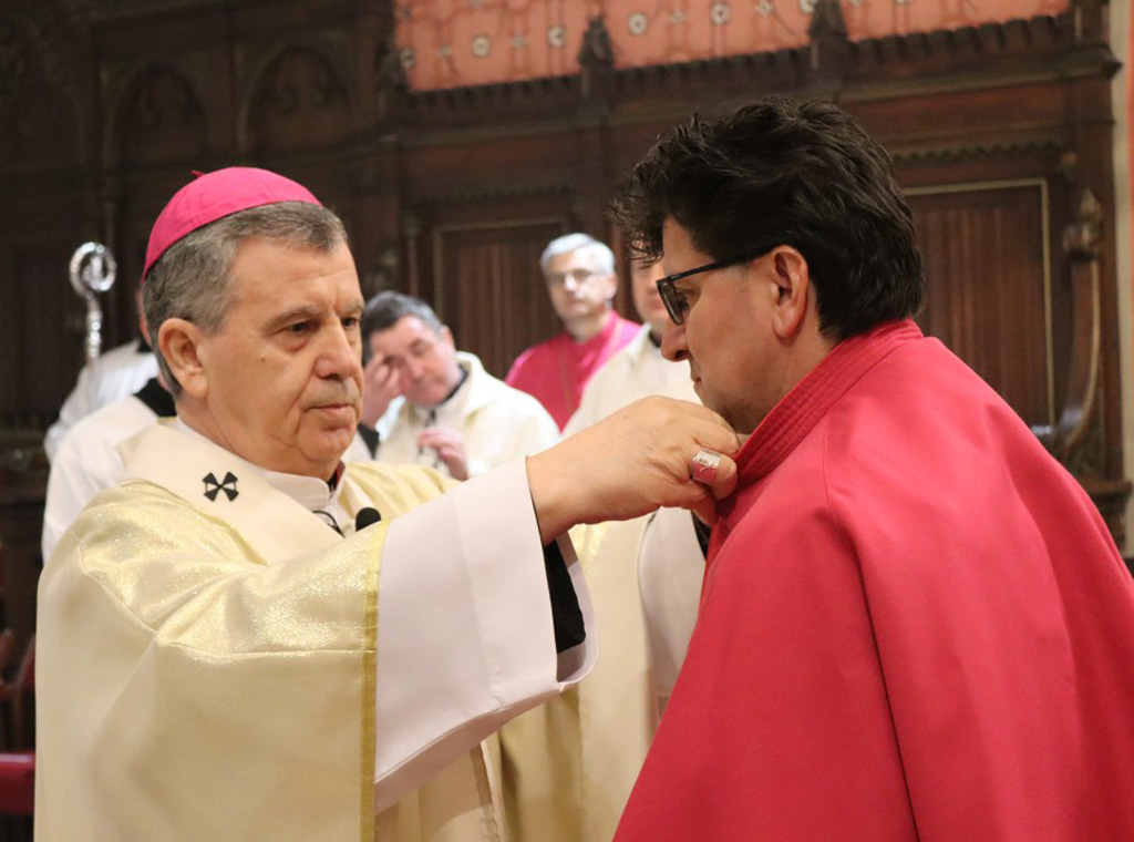 Pred kraj misnog slavlja nadbiskup Vukšić je uveo u službu novog kanonika predajući mu korsko ruho – ljubičastu mocetu (plašt) i kanonički križ te ga uveo u kanoničku klupu u prezbiteriju katedrale.