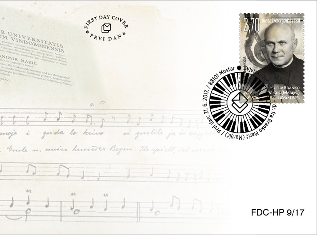 Hrvatska pošta (HP) Mostar izdala je poštansku marku u povodu Svjetskoga dana glazbe s likom prvog bh. etnomuzikologa dr. fra Branka Marića (Marijića)
