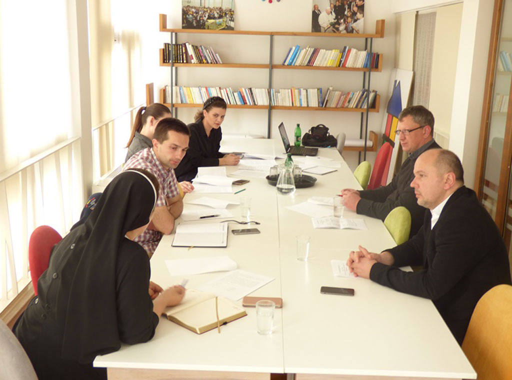 Sastanku na kojem se razgovaralo o programu Dana mladih Vrhbosanske nadbiskupije, koji će se ove godine održati 25. i 26. svibnja sudjelovali su: dr. vlč. Šimo Maršić, ravnatelj NCM-a; preč. Boris Salapić, župnik i čuvar svetišta u Komušini; don Branko Bendra i s. Danica Bilić, vijećnici Vijeća za mlade, Filipa Lončar i Valentina Gluvić, projekt-asistentice te Josip Milanović, koordinator Dana mladih u Komušini.